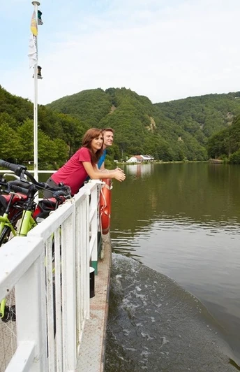 From Losheim am See, it goes via the Saarland cycle path through a varied forest landscape down to the ceramics community of Mettlach. Here, the ride can be interrupted for a visit to the ceramics experience worlds and the factory outlet of Villeroy & Boch. But also worth seeing are the tomb church of Saint Lutwinus and the old abbey with the old tower and park. The Mettlach Abbey Brewery invites you to stop for regional delicacies. Excursion boats are available on the Saar riverbank for round trips.