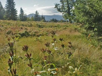 On the demanding tour to Großer Falkenstein (1315 meters above sea level), the path leads us up through the Höllbachgespreng, a romantic landscape with a number of small waterfalls and pristine mixed mountain forest. At the Falkenstein summit, we have a breathtaking view. Right below, one can have a break at Falkenstein shelter. The descent leads us across the Ruckowitzschachten and pristine forest area of Mittelsteighütte.