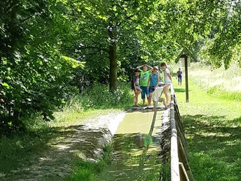 The approximately 1 km long barefoot path starts and ends at the sports center. At up to 15 stations, the feet must repeatedly adjust to various ground conditions. Pointed pebbles, brushwood, or deep mud constantly challenge the feet anew. In other places, more the sense of balance is required. The rule applies: what looks easy is not necessarily easy. At two points, crossing the Mandau river is planned, which can either be a welcome refreshment or also take some overcoming – depending on the water temperature or water level. (extendable with the nature trail "Schülerbusch", about 2 km)
