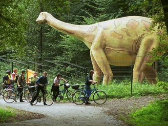 The start of the circular route is at the Tourist Information on Lindenstraße. In Bad Essen-Hüsede you can take a detour to the Backhaus, where baking takes place in a stone oven on special dates. Through the idyllic Glanetal you then come to the 150 million-year-old dinosaur footprints in Bad Essen-Barkhausen. Two life-size concrete dinosaurs await you near the impressive steep wall. In the second part of the route you pass by Burg Wittlage, the former administrative seat.