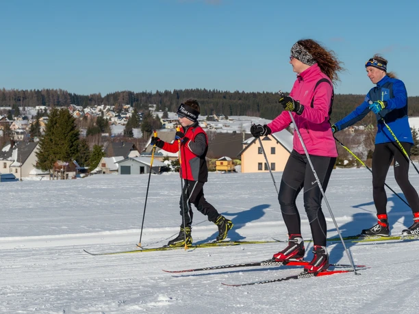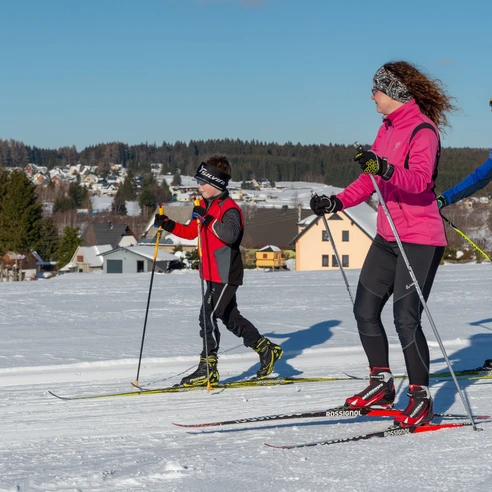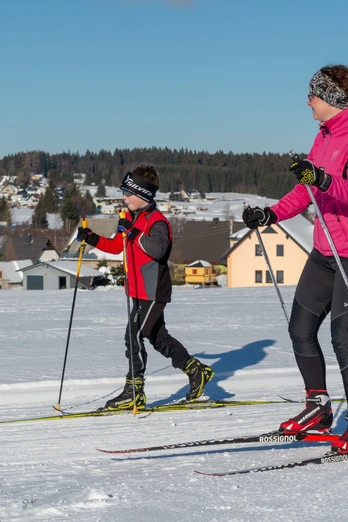 The entry point is at the central starting point behind the Muldenhammer elementary school. The circular route is suitable for skaters (depending on snow conditions) and classic cross-country skiers, and also serves as a connection to the ridge trail. It is passable from both directions and well signposted.