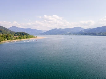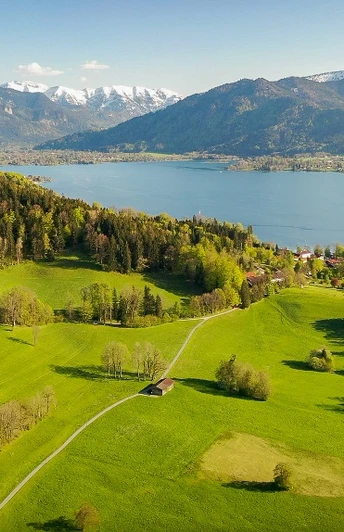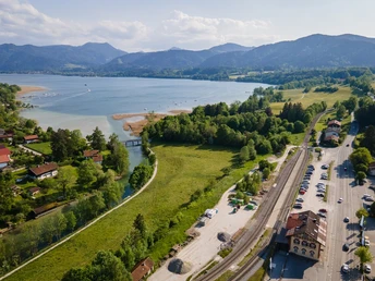 Arrive, catch your breath, look around and enjoy: The Gmund station is located directly on the lake, so first you absorb the atmosphere before setting off via the Mangfall bridge and the idyllic hamlet of Gasse to the Tegernsee Höhenweg. Just before reaching the Höhenweg, in Oberbuchberg the first stop awaits with the unique café in the over 300-year-old Oberbuchbergerhof (note opening hours): fresh cakes, spelt bread, spreads – all homemade and served in the small, romantic garden. In Unterbuchberg finally begins the wide Höhenweg, which leads with gentle ups and downs over 4 kilometers to Tegernsee – it meanders through the forest, repeatedly presents grand views of the lake and mountain landscape, and offers many resting places.