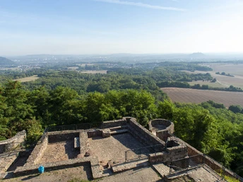 Visible from afar is the Neufelsberg Castle, built around 1400, popularly known as the Devil's Castle. Today it is a tourist attraction, from whose castle plateau—once you have reached it—you have the most beautiful view of Saarland. Before you stretches not only the Saar Valley; on clear days, you can even see as far as the Schaumberg, 30 km away.