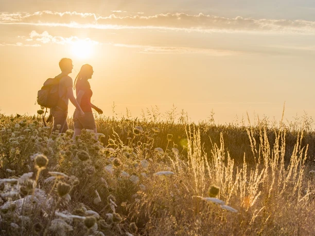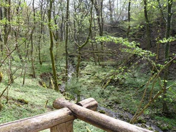 The wooden lookout tower with panoramic panels on Hirnberg offers a special 360-degree panoramic view: The gaze extends over Eimersdorf and Saarfels into the Saar valley. The Litermont, Schaumberg, and the Siersberg castle ruins are clearly visible. The nearby Gallenberg and Scheidberg as well as the villages of Gisingen and Rammelfangen are within reach. Slightly further away are the Lorraine villages Reming and Villing. The churches of Leidingen seem close enough to touch. On the descent, a panel recalls the former Rammelfangen vineyards. The old dry stone walls and terraces are still visible. In the valley floor, the route goes through the Weinbachtal. Along the "Lampersch-Burren," a wooden observation platform at a historic well facility offers a view into the seemingly untouched brook valley.