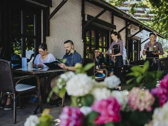 Behind Oberperl, the primeval forest seems to begin. Climbing plants, ivy, and vines hang from the trees, the path winds along the slope, revealing unexpected views into the thicket at every bend.