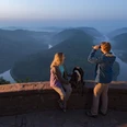 Through the extensive forest area "Hundscheid," the trail runs downhill to the Hundscheider pond, then continues along the Hundscheider Bach downhill to the highlight of the route: the Vogelfelsen above Saarhölzbach. The rock rises nearly 150 meters from the Saar riverbank. From the viewing platform above the rock, there is an impressive view over the course of the Saar.