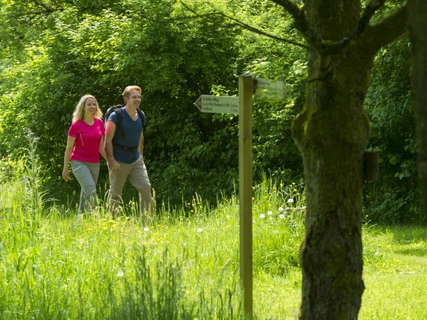 Via a path you enter the Wahnbachtal nature reserve. The narrow gorge of the low mountain stream is also called the "soul protection area Wahnbachtal." You leave the valley via a steep path upwards along the so-called Behlengraben.