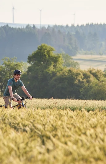 The path now leads through the beautiful forest area of the Lückners to the legendary Odilien chapel. Soothingly, the water trickles here from the spring below the chapel before it feeds the downstream creek. According to legend, it is said to possess healing powers, especially to restore sight to the blind – which is why people from the entire surrounding area have been making pilgrimages here for a long time to wash their eyes. The e-bike route continues through Oppen and Reimsbach along the idyllic Mackenbach. In Hargarten, it passes the lime kiln and then climbs up to the Hungersberg. From up there, you have a fantastic panoramic view.
