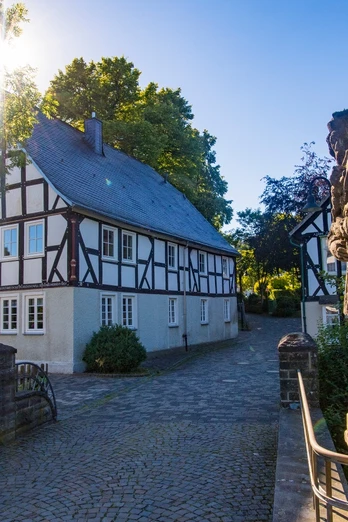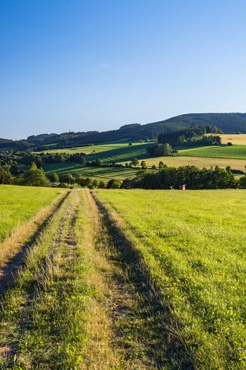 Start centrally in Eslohe at the Hauptstraße, turn into Papestraße and pass Pampel (statue of an Eslohe original) and the parish church through Kupferstraße above the spa park. Pass the tourist info at the Kurhaus and reach Homertstraße. Continue left along the street, past St. Isidor Chapel to Forellenhof Poggel. Here cross the street and go left a short distance over the Sauerland bike ring, then turn right, follow the hiking sign X22 (or the sign feeder Sauerland Höhenflug, H on black background). At the next cable crossing turn right, and at another please turn right again. Follow the path uphill, with a wonderful view of the village of Sallinghausen up to the height, the so-called Windknochen. After reaching the highest point, walk downhill and now follow the yellow H hiking sign for the Sauerland Höhenflug. The Höhenflug leads you through a beech forest to the Lauschgeist, a large sculpture where you can listen to the sounds of the forest or possibly to the sounds from the opposite so-called Erdenklangstraße (a hedge that emits sounds triggered by a motion detector). Continue to follow the Sauerland Höhenflug past Gut Habbecke. First turn right and then left (hiking sign golden G), you are now on the Wenholthausen Golddorfroute. Hike below the game enclosure to the playground on the Eibel. Past the shooting hall, it goes steeply downhill to your destination. In Wenholthausen you will find various nice places to stop for refreshment.