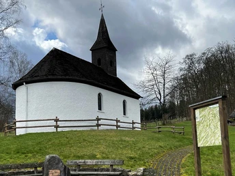 Follow the hiking sign Esloher Grenzgänger. For this, cross the street at the hiking car park through the forest to Hoppen-Kreuz. From here, turn left downhill through the Buchwald forest to the street, which you follow along Schloss Obersalwey to the village. In the village, go right past the chapel through the Romke valley, always uphill to Fretterspring.
