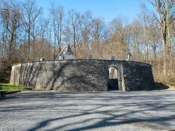 The approximately 6 km long circular path first leads up to the memorial at the Wachtberg with its fantastic panoramic view. Through woods and fields, it passes the mysterious "sphere" that has found secure footing on the Hümerich, then to the Hohenberg with the famous cathedral quarry that once enabled the continuation of the Cologne Cathedral's construction. Finally, the Stumpeberg offers a view into its volcanic vent and a wonderful outlook over the Rhenish volcanic landscape. Along the way through Berkum, local volcanic rock appears in many forms—from the grave cross to the path edge in the show garden to the well-preserved water castle Odenhausen. More information about the route is available under Tour Tips.