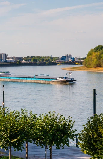 Large sections of the Wesseling Rhine Cycle Path are lined with trees, which provide shade on hot days. Small pieces of so-called "industrial charm" in the form of pipes and steals peek out from between the trees. Benches along the way invite you to take a short break with a view of the Rhine before the picturesque Rhine promenade leads back to the hotel on the Rhine.