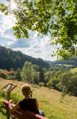 This circular route starts in Latrop and leads you past the Millionenbank on the way back. The Millionenbank – today a shelter at 632m above sea level – owes its name to the hyperinflation after the First World War. In 1923, a beech tree is said to have been felled here. Its value was millions – but they were not worth the paper they were printed on. So the felled beech was quickly made into a bench. This is a good place to take a break.