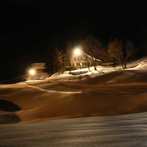The two clubs form the community of interest Loipe Oberberg. The cross-country trail (skating and classic) is located on the snow-sure high plateau of the Oberberg at 1220 meters. With a length of 4 km, it has an altitude difference of approx. 65 m. 2.5 km can be lit as a night trail at any time with the main switch, which is located above the entrance door of the Oberberg restaurant. However, an additional headlamp is still advisable. As the last runner, please switch off the lighting again!