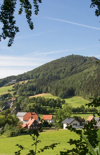 Starting at the Kirschhübel parking lot, you pass through the Nature Park garden heading west and reach the first of a total of 14 information boards along the nature trail marked with a green slash at the top. Via Sängerhöhe, you descend into the valley to Pfarrflössel. Here, the path leads left uphill towards Neu Sorge to the rest area with the millstone table. Via Heideweg and Neuen Weg, you continue uphill on the soft path or optionally take the parallel ridge path towards Lausche. At board 7, the nature trail branches off to Lausche. After this short detour, continue downhill past two mountain huts to the border crossing at the watch station. Now follow the Hohlsteinweg for about 100 meters and then turn left to reach the red quarry along Sonneberg. A root-covered path leads along the forest edge towards Oberdorf parking lot. Along Butterberg, continue to the Nature Park house and from there back to the starting point.