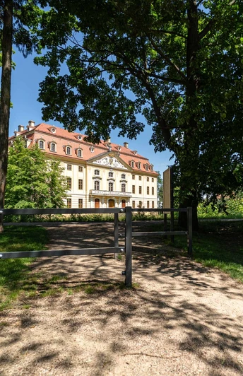 The hiking trail begins at the Grundmühle in the Seifersdorf Valley and initially leads to Wachau. Along the way, you pass the "Wandersmann," a carved wooden figure and popular photo motif. Then the path goes through the beautifully newly designed castle park. The Baroque castle itself can only be viewed from the outside. Along the Saugraben, the path leads north to the district of Lomnitz until it finally ends at the Fünfhufenteich. From here, it is possible to hike back to Wachau along the "Lausitzer Schlange" hiking trail.