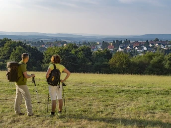 From Weiskirchen, the route goes through Wahnbachtal to the Hochwald Alm. Then it follows a stream down to Grimburger Hof.