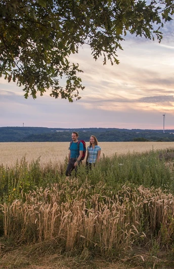 Between Bietzen and Menningen, in every viewpoint axis, are fruit trees in the scattered orchards laid out around the villages. At the "Triangular Grove" stands the stone sculpture "Sonnenstein" by Prof. Paul Schneider, which is part of a group of twelve stone sculptures on the Bietzerberg. On the plateau of the mountain, the path leads to the viewpoint "Saarlouiser Berg", one of the most beautiful panoramic views in Saarland.