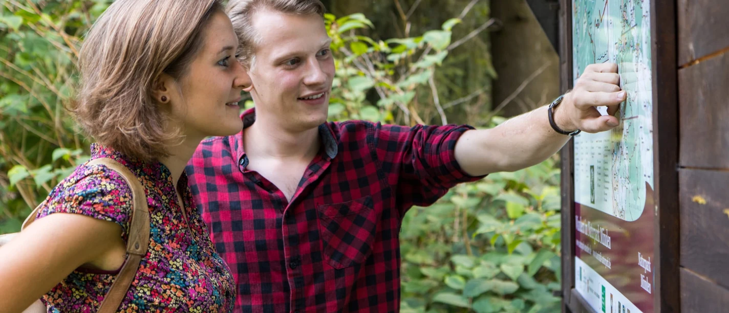 Idyllically situated on the edge of the forest, various fairytale-like elements invite you to discover, linger and picnic. On the wooden lounging benches you can lie on your lazy skin like Pechmarie. Or join Goldmarie in baking bread and shaking apples! Through a window you look down into the valley like Frau Holle. Enjoy the picturesque views of Hemeln and the Weser valley!