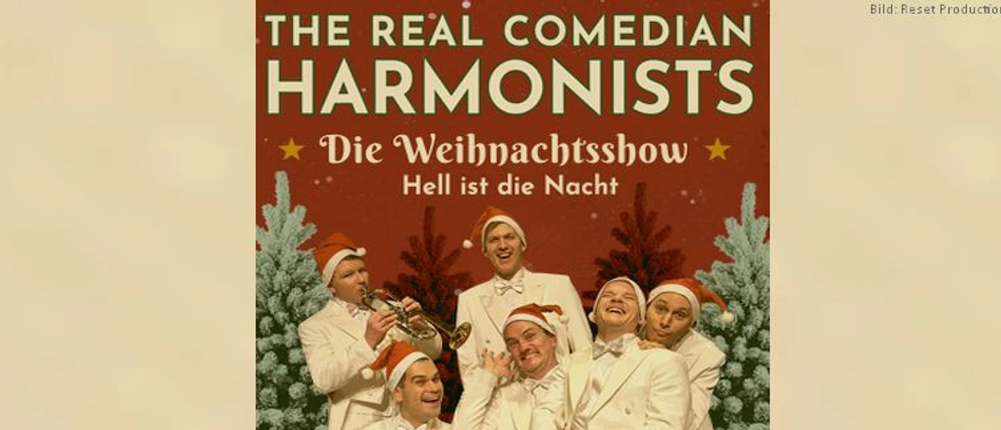 In der besinnlichen Vorweihnachtszeit setzen The Real Comedian Harmonists festliche Glanzlichter auf die Bühne. Nach ihrer erfolgreichen Tour „Ein kleines bisschen Glück“ sind die sechs stilvoll auftretenden Herren im Frack nun zurück mit ihrem Weihnachtsprogramm „Hell ist die Nacht“ und entführen ihr Publikum einmal mehr in eine Welt aus Harmonie, Humor und musikalischer Raffinesse.