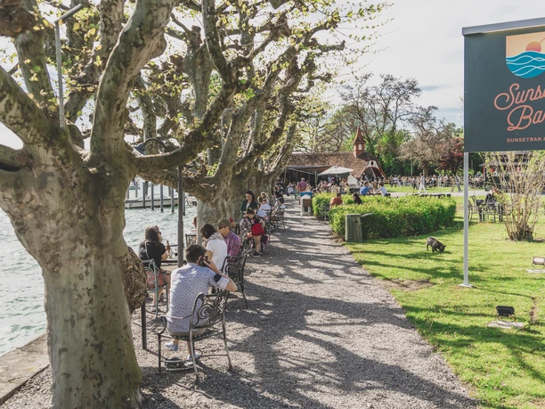 Vivez un pur sentiment de vacances dans notre magnifique Sunset Bar, où détente et plaisir vont de pair. Laisse-toi choyer par l'atmosphère unique et profite de la plus belle place directement au bord du lac, tandis que le soleil se couche à l'horizon dans des couleurs spectaculaires. Nous te servirons en outre des cocktails rafraîchissants et des apéritifs séduisants - parfaits pour laisser le quotidien derrière toi. Que ce soit avec des amis, en famille ou simplement pour une pause bien méritée en solo, tu trouveras chez nous tout ce que ton cœur désire. Nous nous réjouissons de t'accueillir dans notre petite oasis au bord du lac!