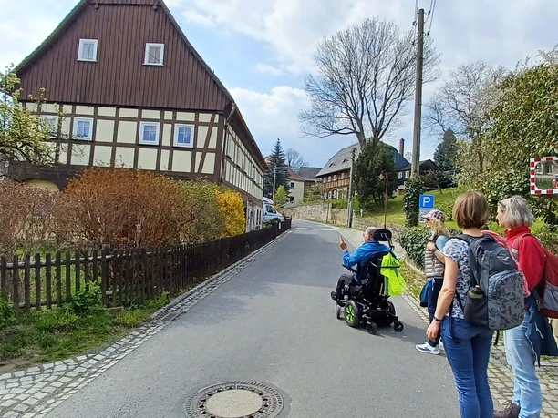- B) Rundwanderweg in den historischen Ortskern von Großschönau teils auf dem Textillehrpfad, Besuch des Deutschen Damast- und Frottiermuseums, Einkehr im Café Liebe oder im Gasthaus „Gaststätte am Heimatmuseum“
