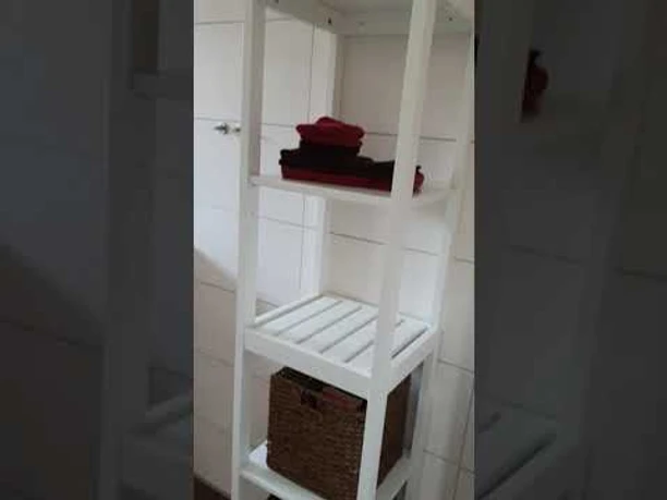 Das Schlafzimmer verfügt über ein 180x200 cm großes Bett aus Massivholz mit 2 einzelnen Matratzen á 90x200cm / Härtegrad: 2 / Höhe 22,5cm, für einen guten Schlafkomfort. Unsere Wahl fiel auf Federbettdecken, sowie 2-Kammern Feder/Daunen Kopfkissen. Sollten Sie ein Nackenschläferkissen benötigen, sprechen Sie uns jederzeit gern an. Ein 3-türiger Kleiderschrank mit Regalen auf der linken Seite und einer breiten Kleiderstange auf der rechten Seite, bietet ausreichend Platz für Ihre Kleidung.