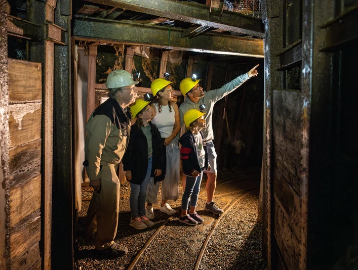 De standaard rondleiding in de centrale galerij duurt ca. 1,5 uur en wordt begeleid door een mijngids, inclusief audiosysteem en licht.