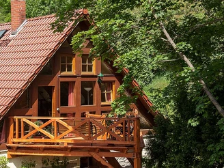 De vakantiewoning heeft een grote, open woonkeuken, een slaapkamer, een slaapgedeelte, een balkon tussen de bomen en een grote tuin met een barbecue om te ontspannen.