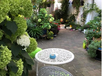 Onze kleine vakantiewoning heeft een oppervlakte van 48 m² en biedt een terras met uitzicht op de tuin.
