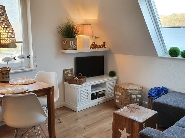 In het huis bieden wij u een licht, modern en comfortabel ingericht 2-kamer appartement "Strandgut" met ca. 35m2 voor max. 2 personen.