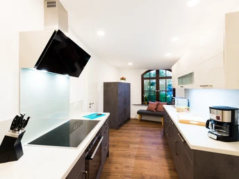 - moderne comfortkeuken met magnetron, heteluchtoven, grote keramische kookplaat, dubbele koelkast, vriesvakken, vaatwasser