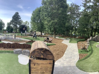 Wees enthousiast: 18 golfholes wachten om door jou ontdekt te worden bij Adventure Golf Burhave. Details zoals een drie meter lange krokodil of een haaienvin die uit het water steekt, zorgen voor een echt boekaniersgevoel. Met dit buitenplezier kan iedereen zijn vaardigheden op de proef stellen - of je nu een watervreesige landrot bent, een jonge lichtmatroos of een echte piraat.
