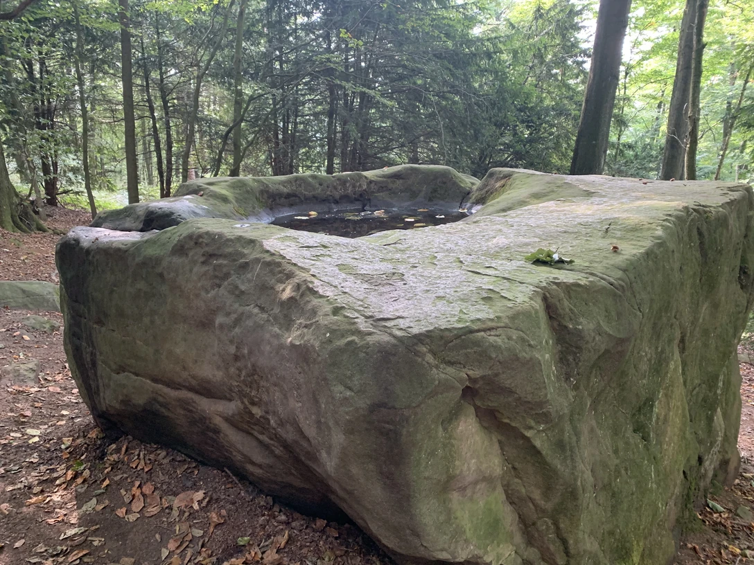 Het blok Wealden-zandsteen met een randlengte van ongeveer 3 meter en een diepe holte aan de bovenkant ligt ongeveer 50 meter van de Deister-rug, ten westen van de Nordmannsturm-toren.