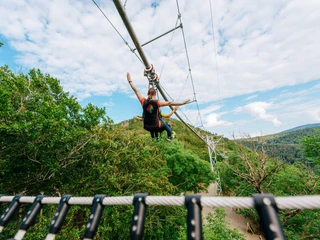 Met een maximale snelheid van 12-15 km/u brengt de Harz boomzweefbaan u vanaf de kasteelheuvel door de wisselende bomenpopulatie en het Kalte Tal naar het uiteinde van het boomtoppenpad, en dat in elk seizoen.