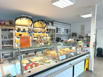 In "Dein Dorfladen" kun je terecht voor een heerlijk ontbijt (ook om mee te nemen), vers gebak en warme dranken, evenals diverse artikelen voor dagelijkse behoeften. Naast levensmiddelen, regionale groenten en fruit, dranken, kranten/tijdschriften, schoonmaakproducten en tabaksproducten verkoopt de winkel ook kleine cadeauartikelen, houten en papieren decoraties en souvenirs.