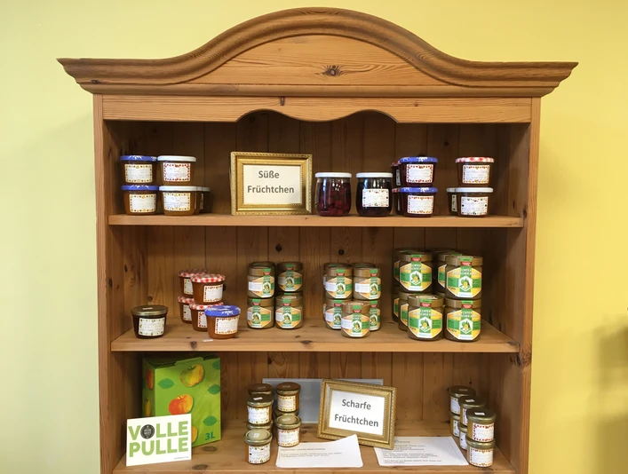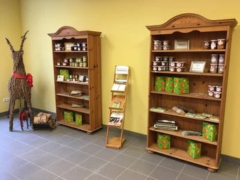 De boerderijwinkel biedt een kleine maar fijne selectie regionale producten van hoge kwaliteit. In de zomermaanden en de herfst wordt het assortiment verrijkt met groenten en fruit uit de eigen tuin van de boerderij. Appels, peren, komkommers, courgettes en diverse kruiden kunnen vers worden geoogst door klanten. Honing, broodbeleg en worst, scharreleieren en sap van de eigen appels zijn het hele jaar door verkrijgbaar.