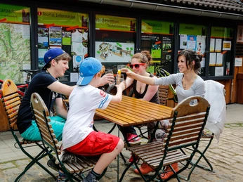 Bij het toeristeninformatiepunt kunnen bezoekers meer te weten komen over de wandelroutes door de Teufelsschlucht en de bezienswaardigheden in de omgeving.
