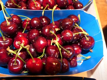 Seizoensfruit, zoals verse aardbeien, kersen, appels en nog veel meer, is verkrijgbaar in de zelfbedieningswinkel Hof Mahler in Hechthausen.