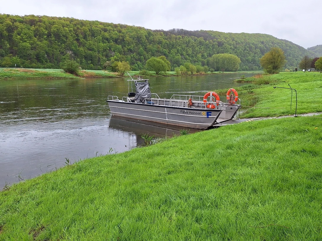 De veerboot kan voetgangers en fietsers van het voormalige scheepvaartdorp Heinsen over de Weser vervoeren.Goed om te weten