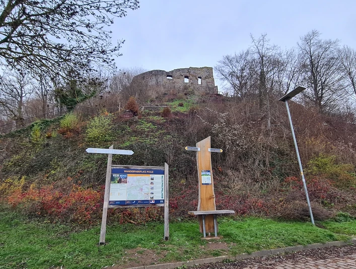 De wandelparkeerplaats is het startpunt voor de Po 1 wandelroute, de Po 2 kwaliteitsroute en de Po 4. Het ligt in Polle direct aan de Weser bij de veerpont Gierseilfähre. Hier kun je genieten van afgelegen bossen en de rust van de Habicht vallei. Het uitzicht vanaf de ruïne van kasteel Polle is ook de moeite waard.