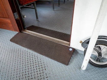 Vom Bahnhof Bad Schandau geht es auf dem Gehweg bergab zur Fähre. Auf dem Weg zur Mole selbst befindet sich auf einem Abschnitt eine größere Neigung, so dass die Hilfe einer Begleitperson angebracht ist.