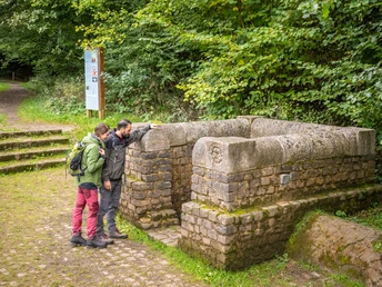 Op deze Eifelsteig-etappe beleef je de verleden tijd vanaf de Romeinen tot de Middeleeuwen. Start is het middeleeuwse klooster Steinfeld. Je laat de stilte van de kloostermuren achter je en wandelt naar beneden naar het dal van de Gillesbach. Na de aansluitende beklimming van de Königsberg word je beloond met uitzicht op de in de wijde omtrek zichtbare torens van het achterliggende klooster Steinfeld. Beschut door dichte boomkruinen wandel je verder tot je een oude bekende ontmoet - tenminste als je al de Eifelsteig-etappe 5 hebt gelopen: het riviertje de Urft, dat door de beemden van het dal slingert, houdt je nu weer een hele poos gezelschap. Maar de Urft is niet het enige water hier, want al snel bereik je een opvallend ommuurde bron. Water is de oorsprong van het leven - de Romeinen wisten deze bijzondere natuurschat al te waarderen en beschermden hem hier bij de Grüner Pütz. Om het kostbare water van de Eifel veilig naar Keulen te brengen legden de Romeinen zelfs een eigen leiding aan. Deze bron wordt bovendien bewaakt door Medusa's - maar pas op! Want volgens de legende mag je hen niet in de ogen kijken, anders versteen je en verga je tot stof.