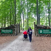 Gegenüber vom Gasthaus Buchenparkhalle biegen wir links ab und befinden uns damit wieder auf dem Gelben Punkt, den wir schon vom Anfang der Tour kennen. Dieser führt uns am Rand des Erlebnisfreigeländes Waldhusche entlang (wer mag, kann hier die Nationalpark-Infostellen Blockscheune und Beizehaus besuchen oder mit seinen Kindern die Stationen der Waldhusche erkunden), kurz durch den Ort, dann am Campingplatz vorbei und ein Stück auf der Schandauer Straße weiter. Bald biegt der Gelbe Punkt nach rechts ab und wir folgen ihm durch das Hintere Räumicht, bis wir schließlich wieder an der Kräuterbaude angekommen sind.