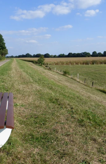 Als u meteen verder wilt lopen, ga dan rechtsaf de "Bollener Landstraße" in. Bij de volgende kruising gaat u rechtsaf de "Bollener Dorfstraße" in. Het pad loopt hier door de Ackermarsch.