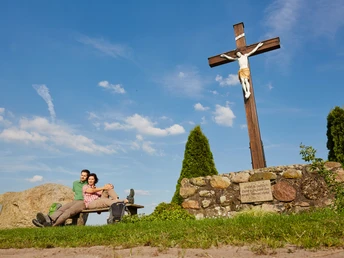 Tussen Börger en Spahnharrenstätte leidt deze indrukwekkende lus indrukwekkende lus door een samenspel van bos en open landschap. Langs de langs de levende kerk van vlechtwerk, bereik je het bos rond de Ohe het bos rond de Klingenberg in. Kleine grillige blokken uit de laatste ijstijd leiden je naar de legendarische Männige Berge: een grafheuvel die als begraafplaats diende voor meer dan die meer dan 1300 jaar dienst deed als begraafplaats. Tot op de dag van vandaag zijn 61 met heide bedekte heuvels nog steeds getuigen van het belang van deze betoverende plek uit de bronstijd. Vlakbij nodigt de eeuwenoude Spahn-beuk je uit voor een pauze onder zijn machtige kruin.