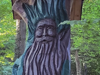 De tocht loopt in het begin langs de Lenne en langs kasteel Holtzbrinck. Het representatieve gebouw dateert uit de 16e eeuw en heeft een heel mooie rococotuin, die loopt tot aan de Lenne. Kasteel Holtzbrinck diende vroeger als districtskantoor, maar vandaag de dag is het cultuurcentrum, evenementenlocatie en ontmoetingscentrum. Via de Burgweg lopen we dan naar boven naar kasteel Altena. Van daaruit lopen we verder op het natuurpad, dat direct het bos ingaat. We lopen langs het gedenkteken en het groene klaslokaal. Op de eerste Zickzack naar beneden bevindt zich een mystieke bron aan de kant van de weg. Haast vergeten is het Steinsbörnchen, waarover het een en ander wordt verteld tijdens de rit naar boven naar kasteel Altena met de belevingslift. Op de terugweg naar het stadje komen we langs "Haus Mückenburg" en het Duitse draadmuseum. . Pal tegenover het museum bevindt zich Hotel am Markt (zondag gesloten) en een stukje verder naar beneden Café zu Burg. Beide etablissementen bieden een mooie gelegenheid om na zoveel cultuur, natuur en beweging en vóór het laatste stuk naar de parkeerplaats de inwendige mens te versterken met een heerlijke Duitse maaltijd.
