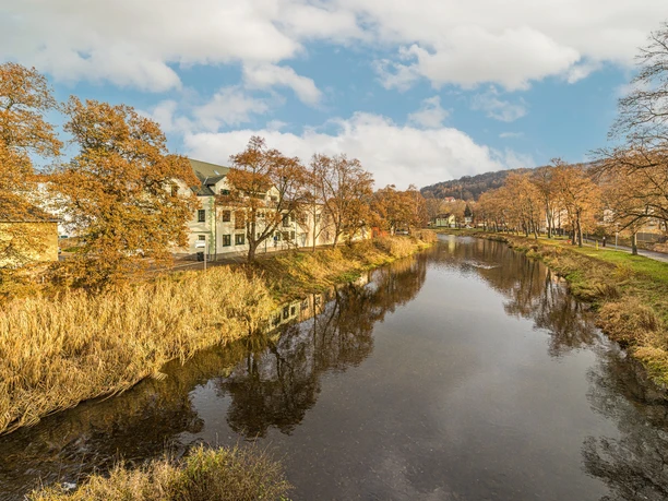 - Bestemming: Informatiebord Schwarzes Roß/Rote Brücke op de kruising van de Nossenerstraße en de Wehrstraße