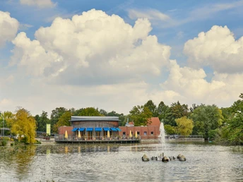 Het vijfde park is in Rietberg. Hier geloof je je ogen pas echt als er plotseling een kleine kudde waterbuffels opduikt tussen de struikenperken. De Aziatische buffels zijn nu thuis bij de uitkijktoren in het Gartenschaupark Rietberg. Het park staat ook bekend om zijn aanbod voor jong en oud, met zijn waterspeeltuinen en klimparken aan de rand van de mooie oude stad.