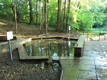 U passeert het Kneipp-bad aan het begin en komt onderweg af en toe stalen sculpturen tegen van het kunstproject "Road of Peace".